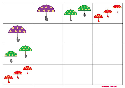 Πίνακας διπλής εισόδου με ομπρέλες στη μια στήλη και ποσότητα στην άλλη στήλη ως το 3 . Ο παρακάτω πίνακας διπλής εισόδου μπορεί να χρησιμοποιηθεί κι από μικρότερα παιδιά .